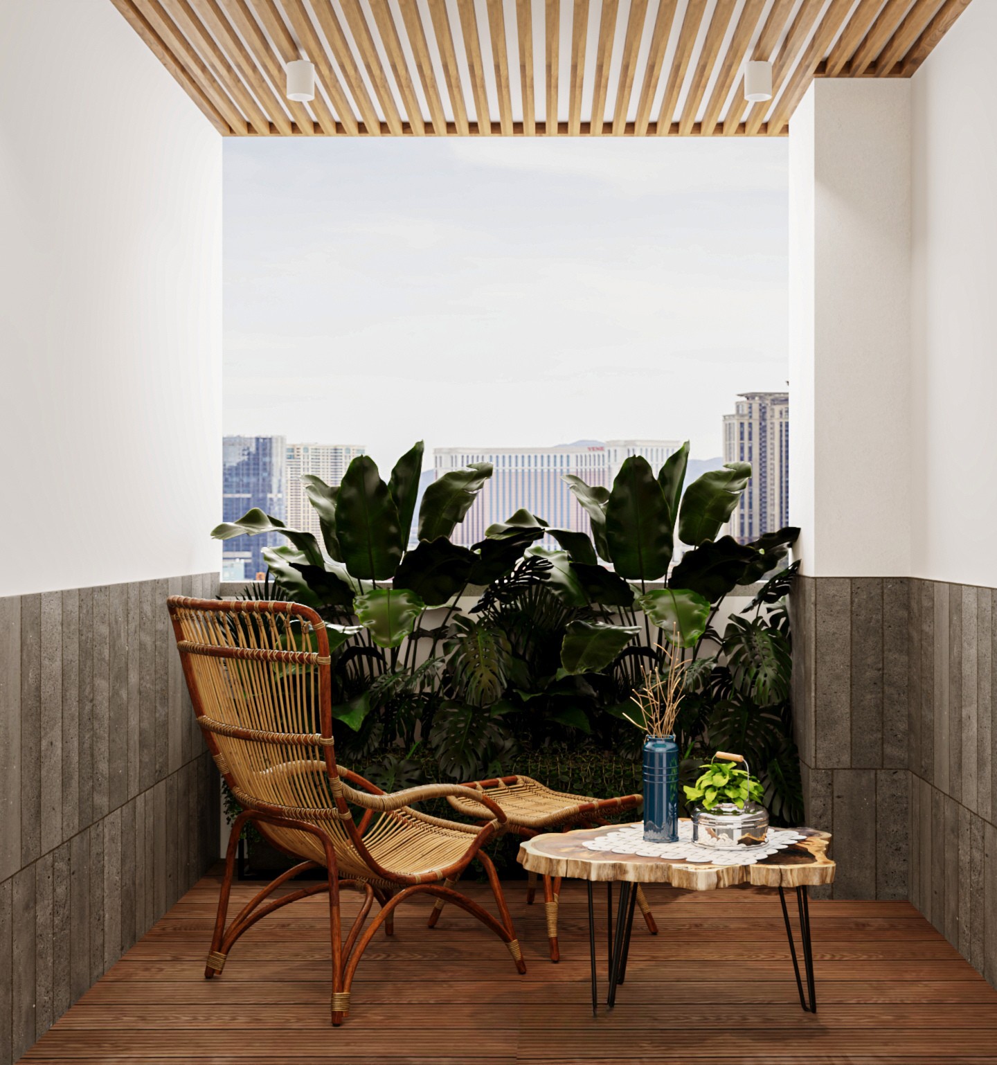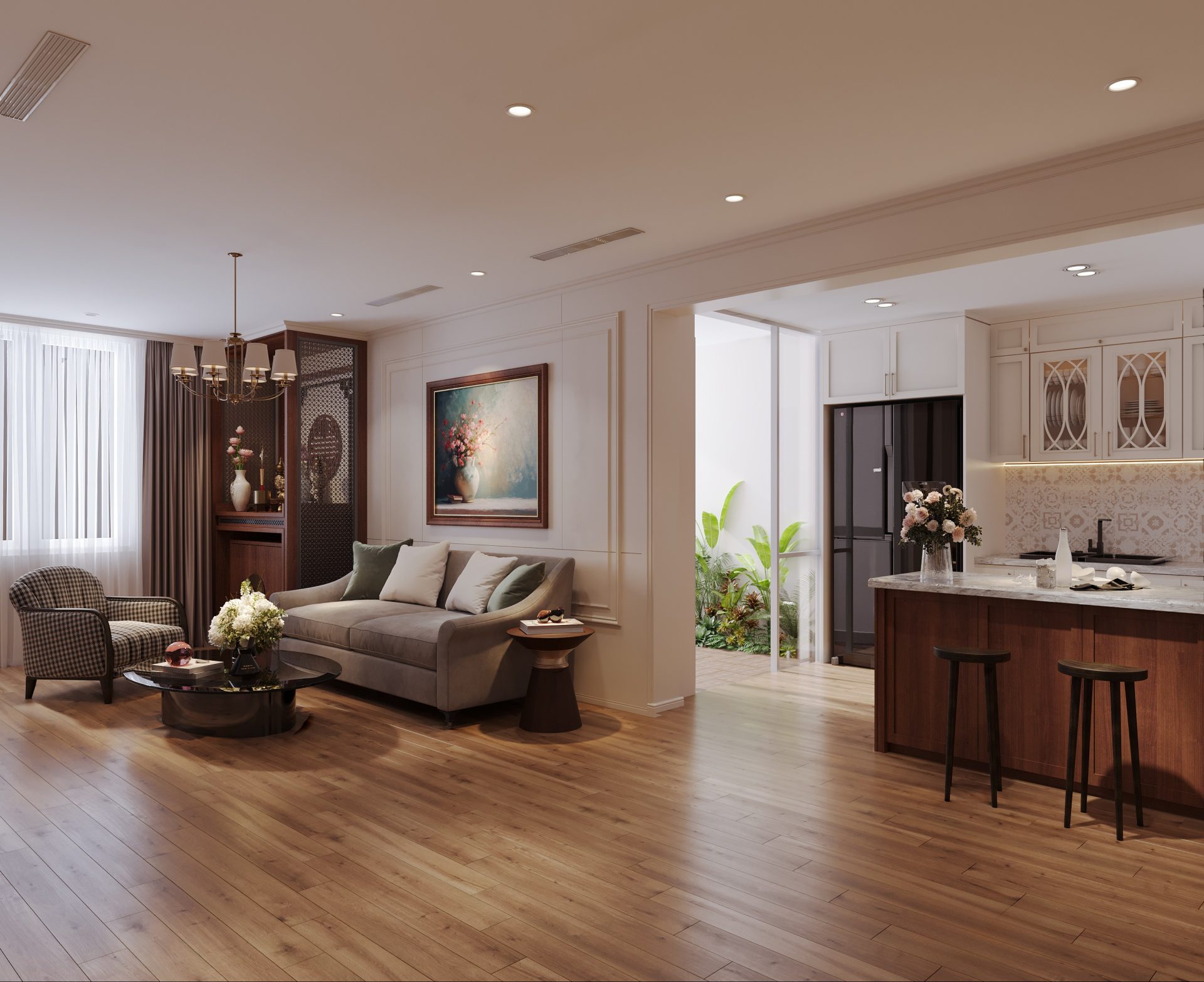 Sự kết hợp hài hòa vật liệu giúp không gian vừa bền vững, vừa đạt chuẩn thẩm mỹ của phân khúc cao cấp.