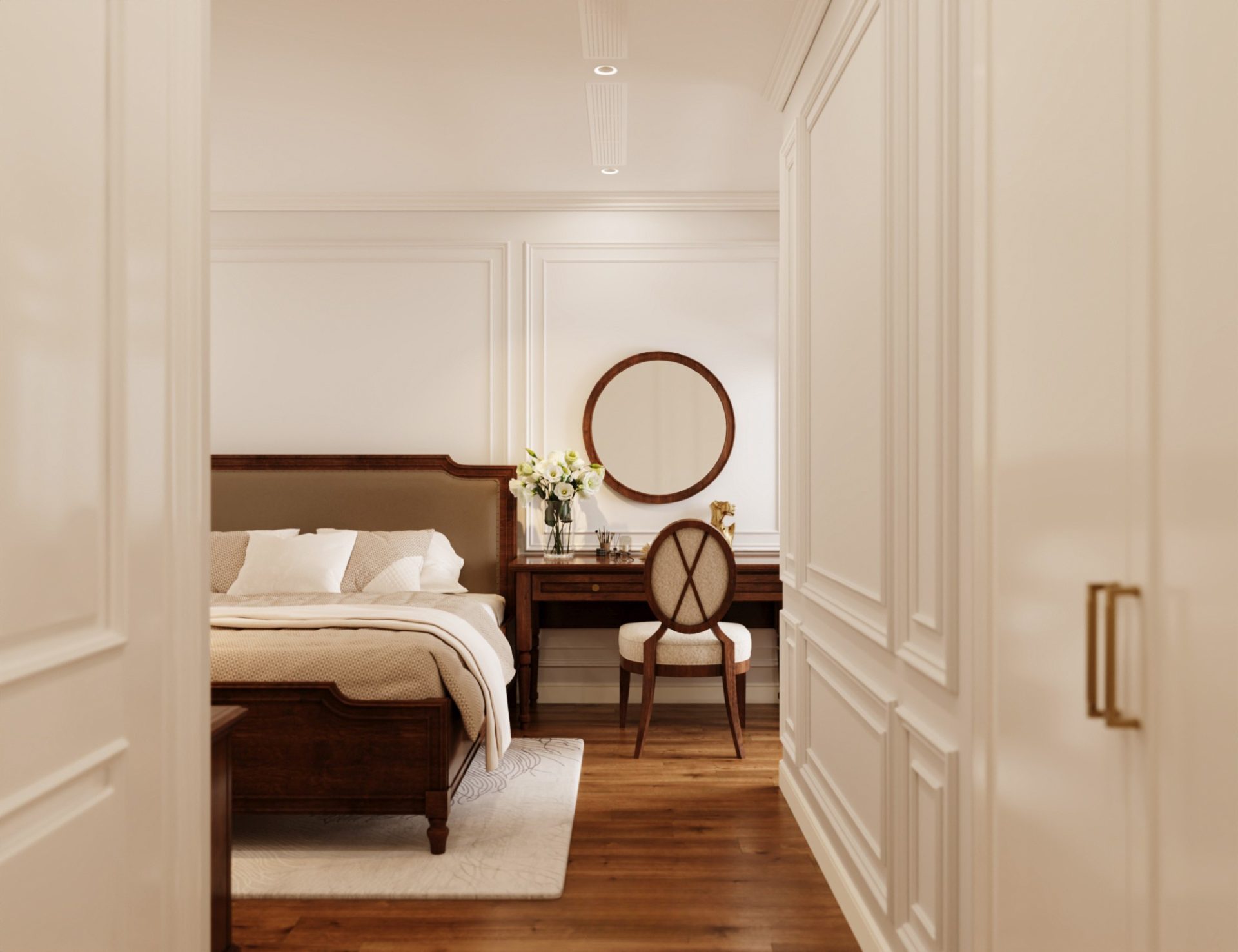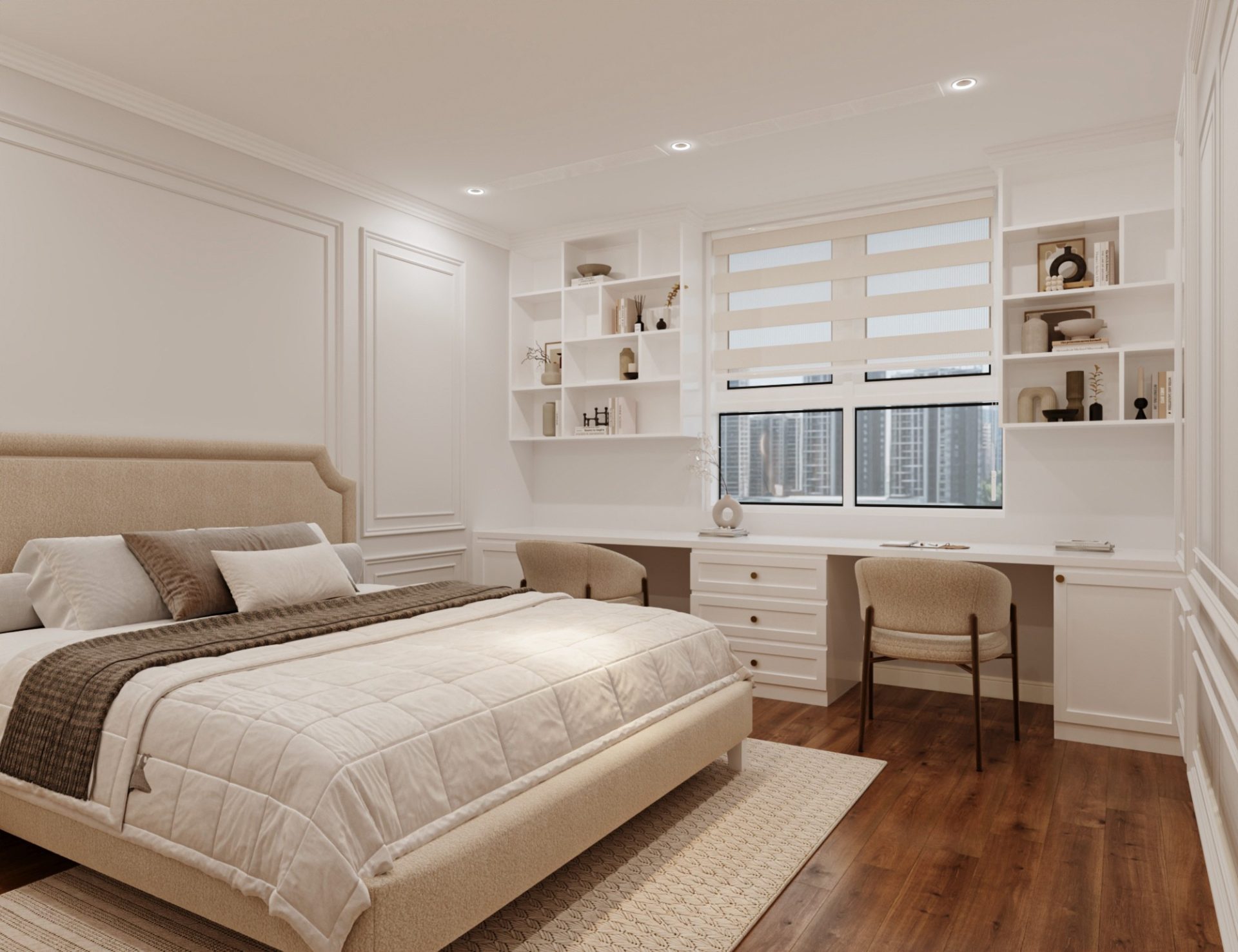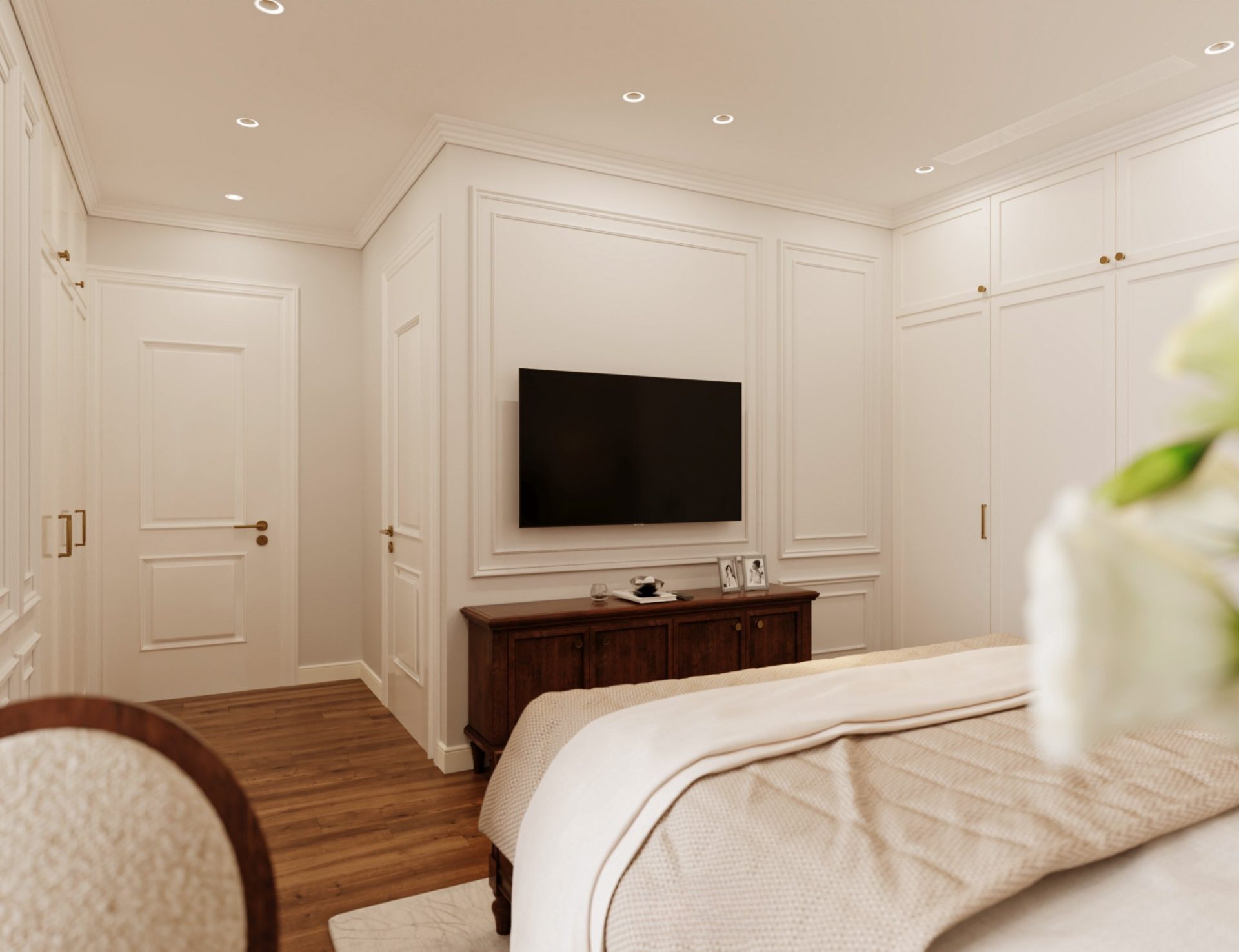 Với diện tích 86m², bài toán đặt ra là tối ưu không gian nhưng vẫn giữ được chất “cao cấp”. DRG lựa chọn phong cách tân cổ điển nhẹ, lược bỏ chi tiết cầu kỳ, tập trung vào: