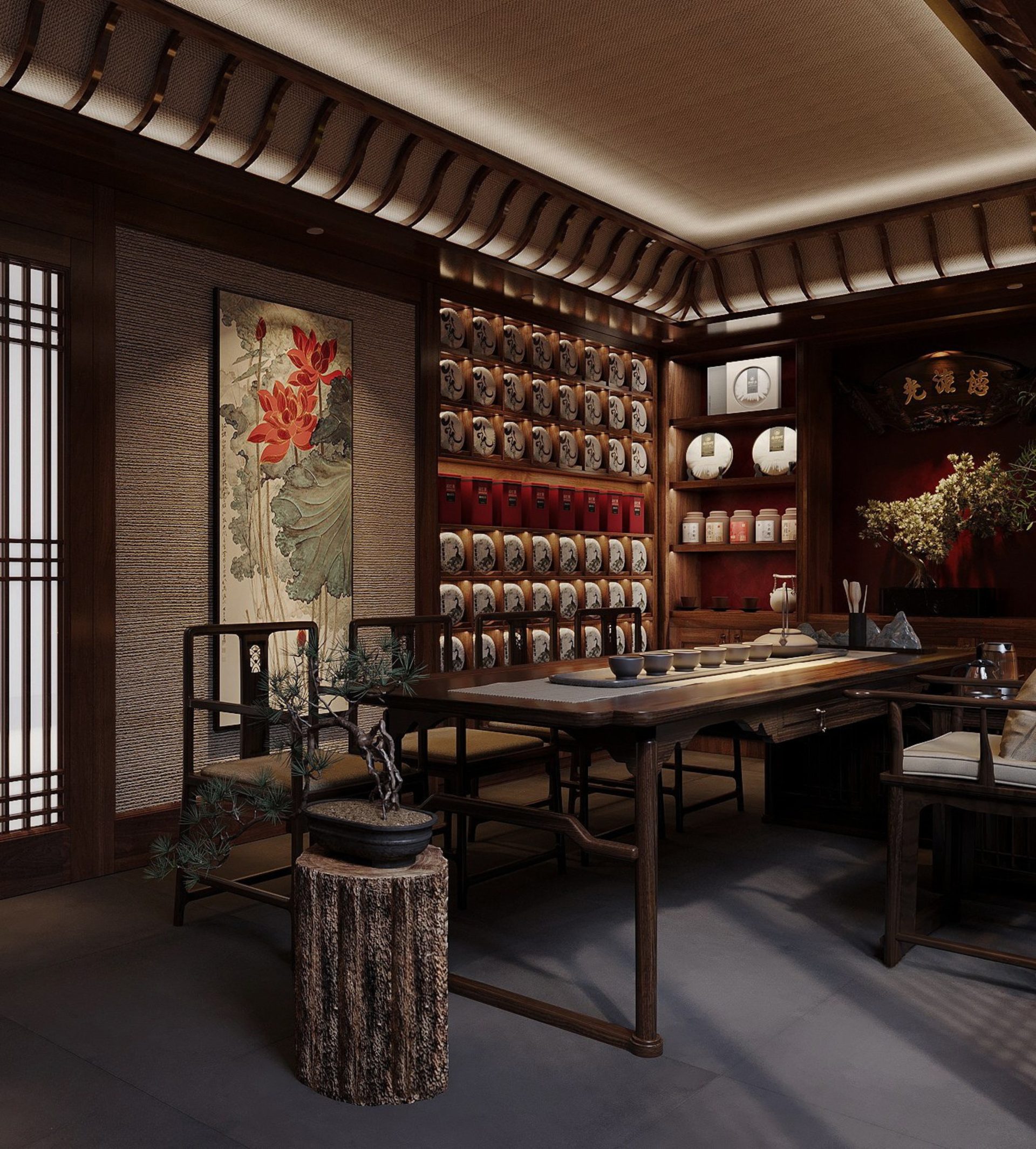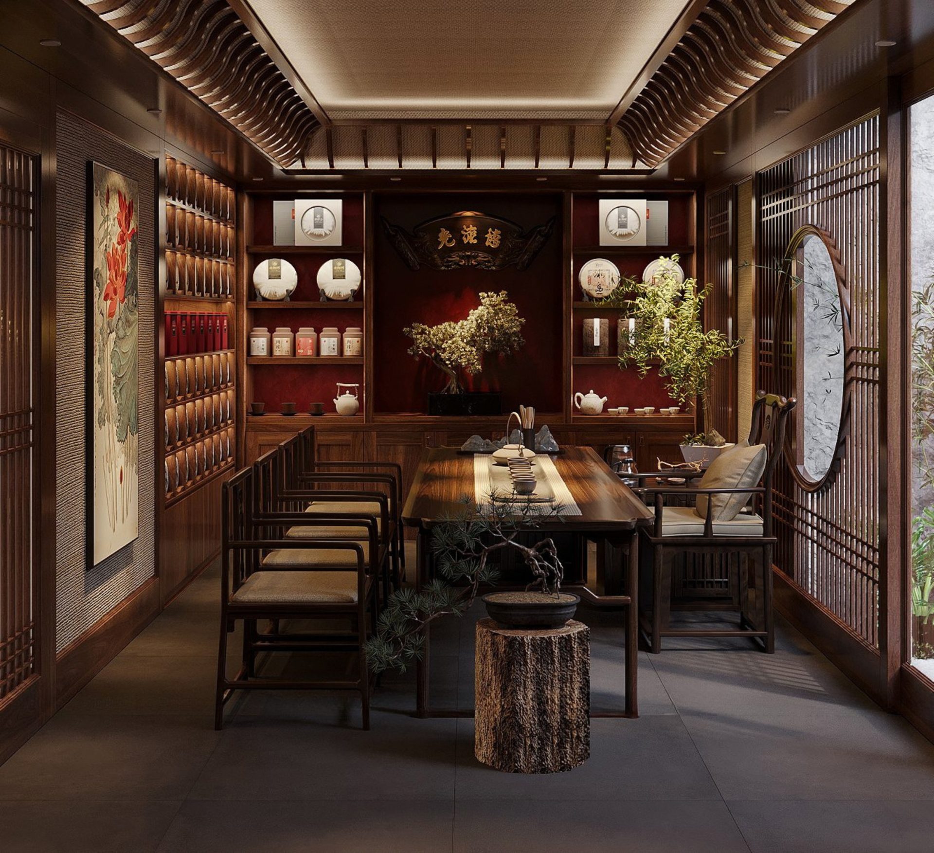Dự án là sự kết hợp hài hòa giữa thẩm mỹ truyền thống, vật liệu tự nhiên và ngôn ngữ thiết kế hiện đại tiết chế, tạo nên một phòng trà sang trọng nhưng không phô trương, trầm lắng nhưng đầy chiều sâu.